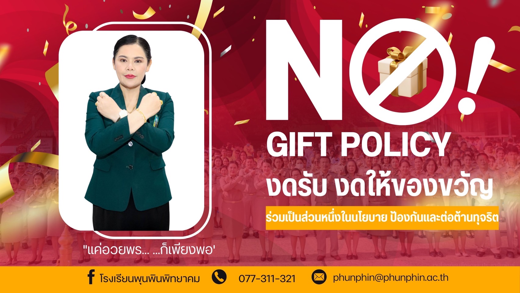 ประกาศเจตนารมณ์และการสร้างวัฒนธรรม ตามนโยบาย No Gift Policyจากการปฏิบัติหน้าที่