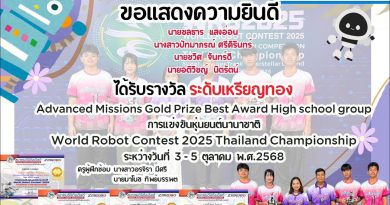 - เด็กชายกันติทัต โกละกะ ชั้นม.1/10 ได้รับรางวัลลำดับที่ 15