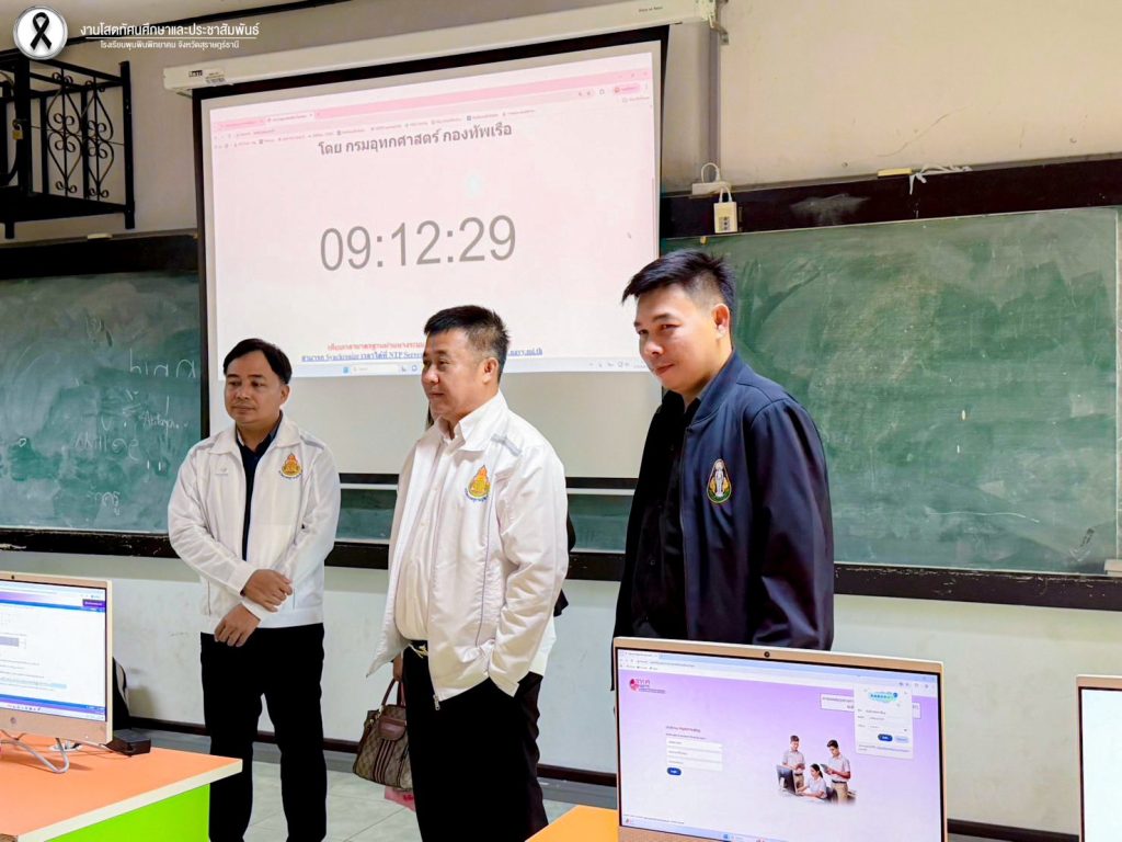 วันที่ 1 มีนาคม 2569 ดร.พิมลรัตน์ โสธารัตน์ ผู้อำนวยการโรงเรียนพุนพินพิทยาคม พร้อมด้วย นางสาวจิราพร บุญเหลือ นายพิเชษฐ์ รักษาราช รองผู้อำนวยการโรงเรียน และคณะกรรมการประจำสนามสอบ ร่วมต้อนรับ นายวานิช อินทร์สุวรรณ ผู้อำนวยการโรงเรียนเขาพนมแบกศึกษา ประธานสหวิทยาเขตสุราษฎร์ธานี 2 และนายบัญชา ช่อสุวรรณ ผู้อำนวยการโรงเรียนกาญจนาภิเษกวิทยาลัย สุราษฎร์ธานี เพื่อกำกับติดตามและได้ลงพื้นที่ตรวจเยี่ยมสนามสอบการทดสอบทางการศึกษาระดับชาติขั้นพื้นฐาน (O-NET) ระดับชั้นมัธยมศึกษาปีที่ 6 ด้วยระบบดิจิทัล ปีการศึกษา 2568 ระหว่างวันที่ 28 กุมภาพันธ์ – 1 มีนาคม 2569 ณ สนามสอบโรงเรียนพุนพินพิทยาคม ทั้งนี้โรงเรียนพุนพินพิทยาคม ได้ดำเนินการจัดสอบเป็นไปด้วยความเรียบร้อย โปร่งใส และเป็นไปตาม แนวทางที่สำนักงานคณะกรรมการการศึกษาขั้นพื้นฐานกำหนด สร้างความเชื่อมั่นในระบบการวัดและประเมินผลทางการศึกษาอย่างมีประสิทธิภาพ