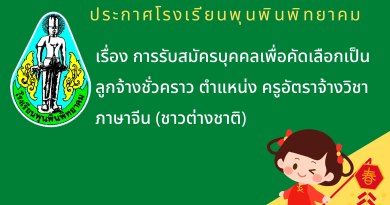 ประกาศโรงเรียนพุนพินพิทยาคม เรื่อง รายชื่อผู้มีสิทธิ์สอบคัดเลือกบุคคลเพื่อเป็นลูกจ้างชั่วคราวตำแหน่ง ครูอัตราจ้างวิชาภาษาอังกฤษ (ชาวต่างชาติ)