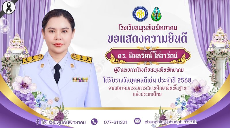 โรงเรียนพุนพินพิทยาคม ขอแสดงความยินดีแด่ ดร.พิมลรัตน์ โสธารัตน์ ผู้อำนวยการโรงเรียนพุนพินพิทยาคม
