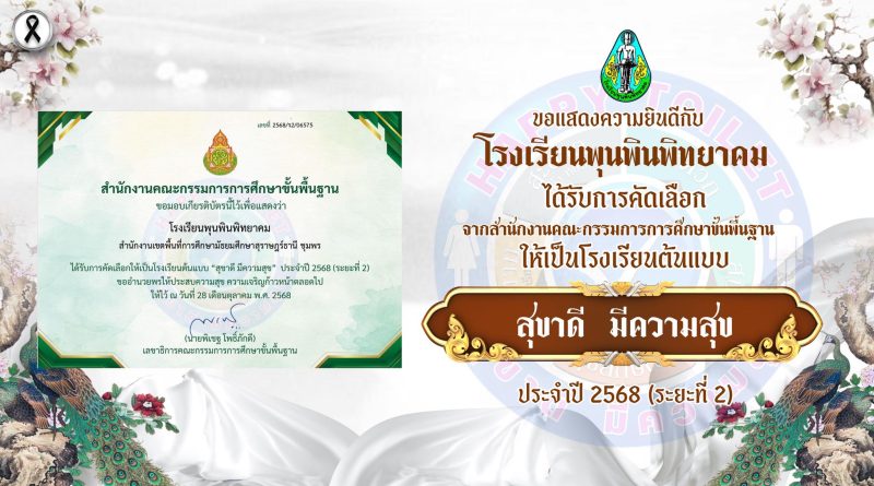 ขอแสดงความยินดี กับ โรงเรียนพุนพินพิทยาคม ได้รับการคัดเลือกจากสำนักงานคณะกรรมการการศึกษาขั้นพื้นฐาน ให้เป็นโรงเรียนต้นแบบ “สุขาดี มีความสุข” ประจำปี 2568 (ระยะที่ 2)